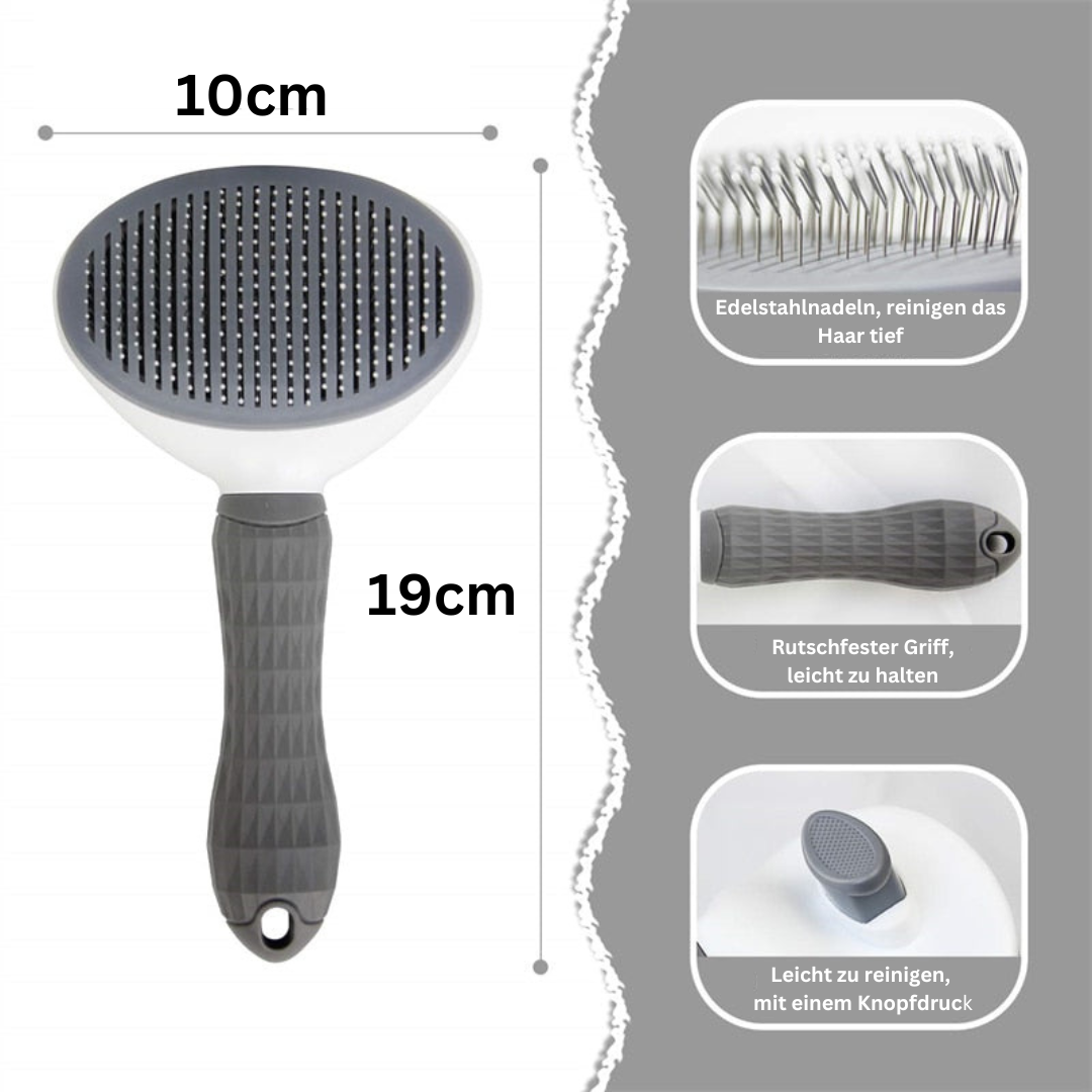 Unsere Katzenbürste RemoveHair mit Knopfdruck-Mechanismus ist die ultimative Lösung für alle Katzenbesitzer, die müde sind, sich mit herkömmlichen Bürsten herumzuschlagen und hängengebliebene Haare mühsam von Hand zu entfernen.